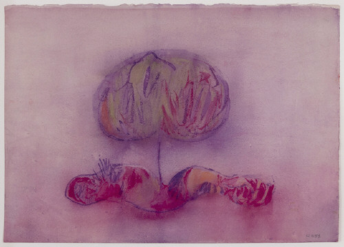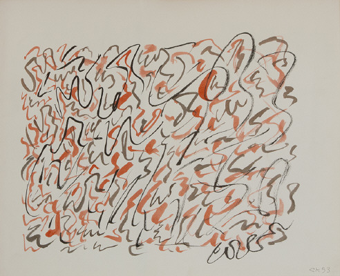 This diverse group of works on paper represents several periods of Kauffman's career, from the early 1950s through 1994. In all nine drawings, there is a loose, skipping line which defines form. Previous researchers and writers have often noted the direct relationship of this drawn line to the forms in Kauffman's paintings.
